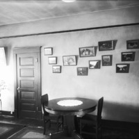 - Interior of Bisbee Studio; room with a table and chairs beneath photos.