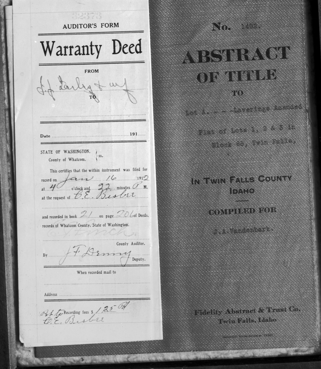 Abstract of Title for the Bisbee Studio (Lots 1, 2, and 3 of Block 88.