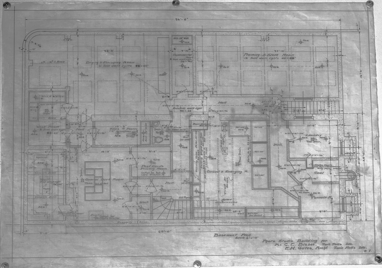 - Blueprints for the basement of the Bisbee Studio. Plans drafted by Twin Falls architect Ernest Gates.