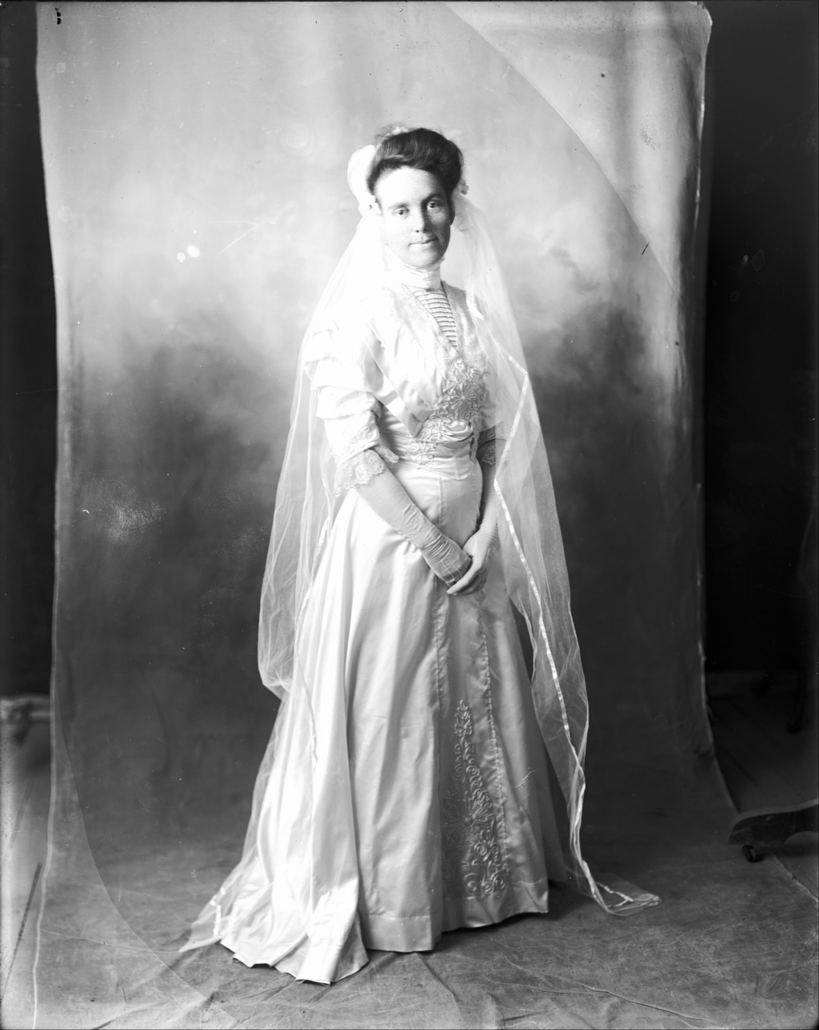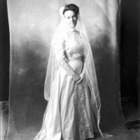 - Portrait of Jessie Bisbee in a wedding dress.