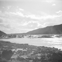 - Water flowing at Lower Salmon Falls at the base of foothills.