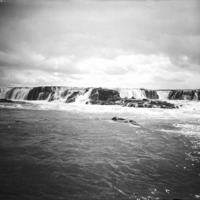 - A wide view of the low falls at Upper Salmon Falls.