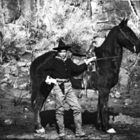 - A cowboy poses beside his horse