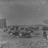 - "Registered Herefords on H.T. West's No. 1 Ranch, 1 Mile South of Kimberly;" cattle stand in a field; a barn and house in the background.