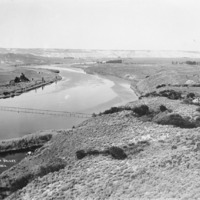 - "Upper Hagerman Valley near Bickel Ranch;" wide view of the Snake River