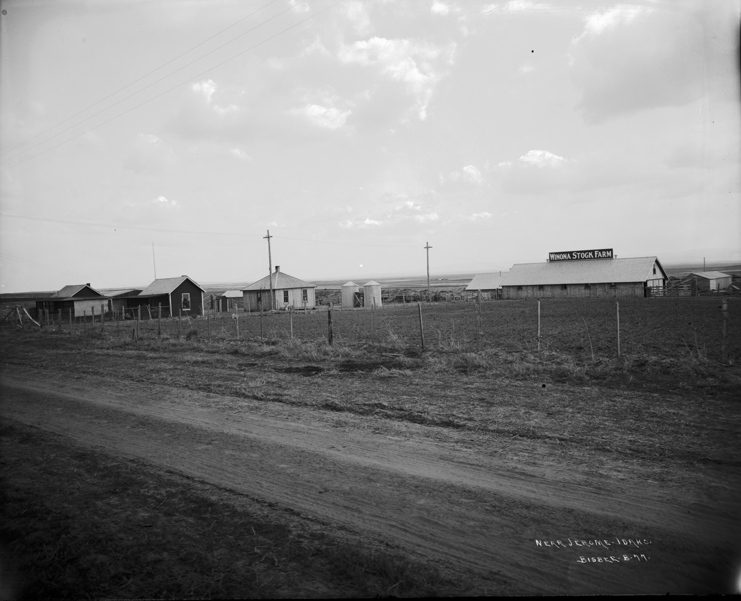 - "Near Jerome, Idaho;" a farmstead with a house, barn, and numerous outbuildings; A sign on the long barn reads, "Winona Stock Farm."
