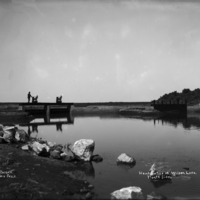 - "Headgates at Wilson Lake, North Side;" a man stands at the gates