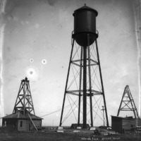 - "Water Tank. Jerome, Idaho;" water tank among other buildings; a man stand at the top of a structure on one of the buildings