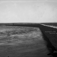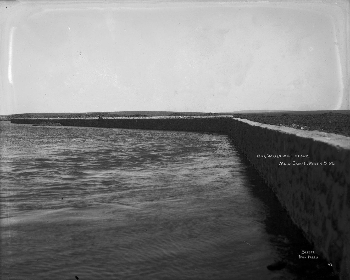 - "Our Walls Will Stand. Main Canal. North Side;" wide view of the walls surrounding the canal; a man sits on the top of the wall in background