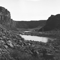 - Grade into the Snake River Canyon, from the north side; Blue Lakes below.