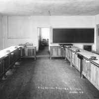 "High School Electric Kitchen; a classroom with counters with elevated hot plates.