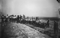 1952 A large group of school children posed at the side of the first school in Twin Falls.