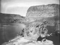 1943 Large rock formations at Pillar Falls in the Snake River.