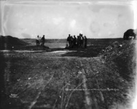 B 104 "Opening a New Section of Main Canal, North Side; a crew of men with shovels work on the canal bed; a team of horses on right