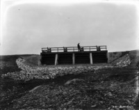 S 025 A man and a two-horse buggy stops on a low bridge across a dry canal.