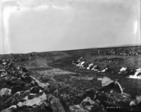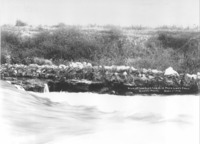 GB 085 "View of Low Line Canal in Pete Link's field; September 11, 1912;" water rushed along canal, eedged by rocks and sage brush.