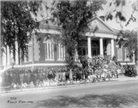 GB 091 "Rally Day - 1931;" large group of people pose on the Shoshone St facing steps of the First Christian Church.