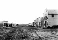 GB 056 "Hollister;" Buildings along the main street; Businesess and buildings visible include: restaurant, hotel, furniture, general store, general merchandise.