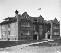 2066 "Lincoln School;" with landscaping, soon after construction. {This building was demolished in 1975.} -