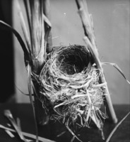 PC-2403 A studio portrait of a bird's nest in cattails. -