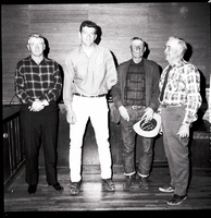 KEL 608 Four men attend the Northeast Elko Soil Conservation District meeting. The man on the far right is Harvey Hale. The other three are not identified. The luncheon and business session were held at Cactus Pete's at Jackpot.