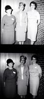 KEL 516 In the top image, checking over the registration list at a Cowbelles organizational meeting are, from left to right, Mrs. Carl G. Anderson, president-elect of the Idaho Cowbelles, Mrs. Robert Stringfellow, treasurer of the Idaho Cowbelles, and Mrs. Roy Mink, president of the