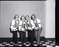 KEL 227 Dilettantes members Ivan Squires, Del Slaughter, Henry Wills, and James La Grone, dressed in striped vests and bow ties, pose with their hats after being selected for the Dilettante Group of the Magic Valley's production of "The Music Man."