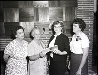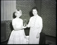 KEL 070 Mrs. Donald Youtz presents pianist Margaret Van Orman with a trophy at a Junior Music Club Gold