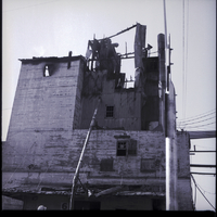- The Shields Warehouse in Buhl shows significant damage after the building caught on fire. At the bottom of the image, a doorway labeled "6" and a man in a hard hat are visible.