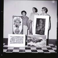 Mrs. Earl Peck, registration chairman. The art works are by Joe Mugnaini, Vesta Ward, and