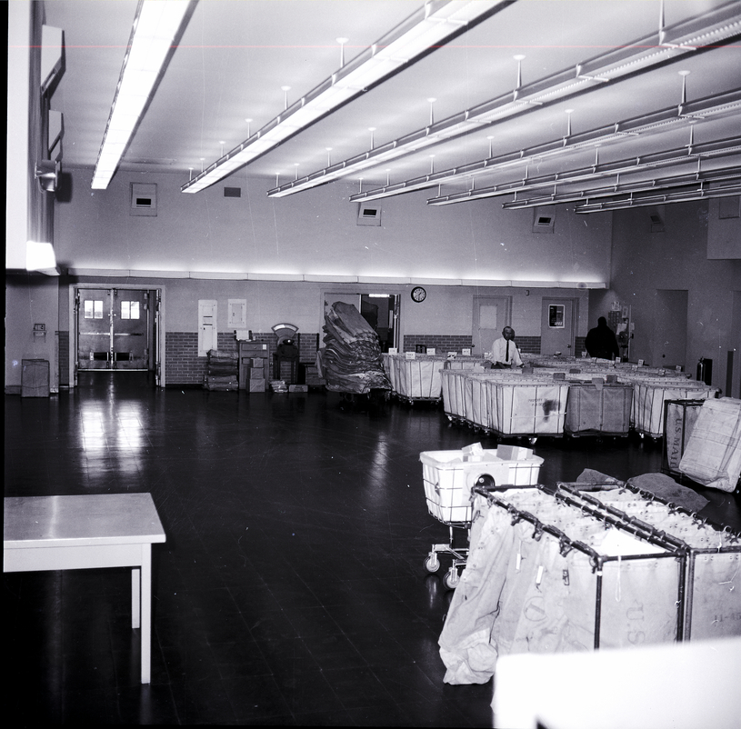 - Looking over empty hampers that were bulging with undelivered Christmas parcel post only a few days ago is Albert Hoover, parcel post delivery man for the Twin Falls Post Office.