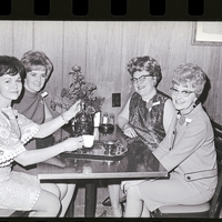 A silver coffee service, representative of the 25th Anniversary of the Twin Falls Jay-C-Ettes, was displayed along with other silver items at the Rose Banquet held at the Depot Grill in observance of the anniversary. Among