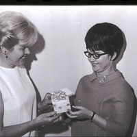 - Alpha Nu chapter members Mrs. Maurice Fuller, right, presents Mrs. Mark Wilkie a small wrapped present as a "Girl of the Year" award during the Epsilon Sigma Alpha Founder's Day celebration.